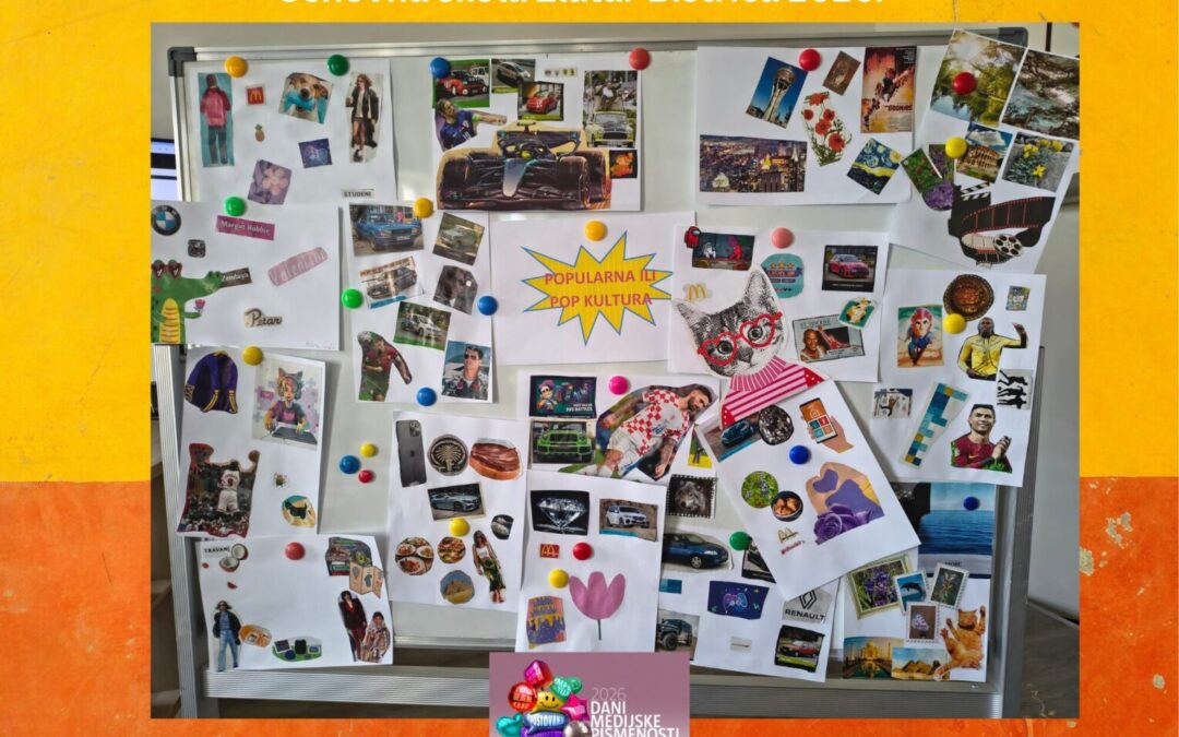 U školi smo 24. travnja 2026. godine obilježili Dane medijske pismenosti s ciljem razvijanja medijske i digitalne pismenosti kod učenika. U školskoj je knjižnici tom prigodom uređen pano s radovima nastalima tijekom radionice „Važnost pop kulture i medija u izgradnji identiteta djece i mladih“ koju je učenicima 7. razreda održala školska knjižničarka Snježana Kovačević, a u suradnji s nastavom Hrvatskog i Engleskog jezika.