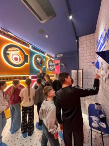 Naše prvo odredište bilo je VR kino KEK, gdje su učenici uronili u svijet virtualne stvarnosti. Pogledali su dva VR filma povezana temom „Od postanka do svijesti“, koji su ih na interaktivan i dojmljiv način proveli kroz nastanak i povijest našeg planeta, ali i na putovanje unutar sebe, koje nas je vodilo do spoznaje da imamo najdragocjenije postignuće života: svjesni um. Nakon toga posjetili smo Muzej smijeha – HaHa House, jedinstveno mjesto koje kroz humor i interaktivne sadržaje potiče pozitivne emocije, kreativnost i zajedništvo. Učenici su s oduševljenjem sudjelovali u zabavnim aktivnostima i isprobali mnoge neuobičajene instalacije. Za kraj našeg izleta prošetali smo Gornjim i Donjim gradom te razgledali više atrakcija u sklopu Festivala svjetla. Svjetlosne instalacije i umjetnički prikazi pretvorili su gradske ulice, trgove i parkove u pravu čaroliju, pruživši učenicima nezaboravno iskustvo.