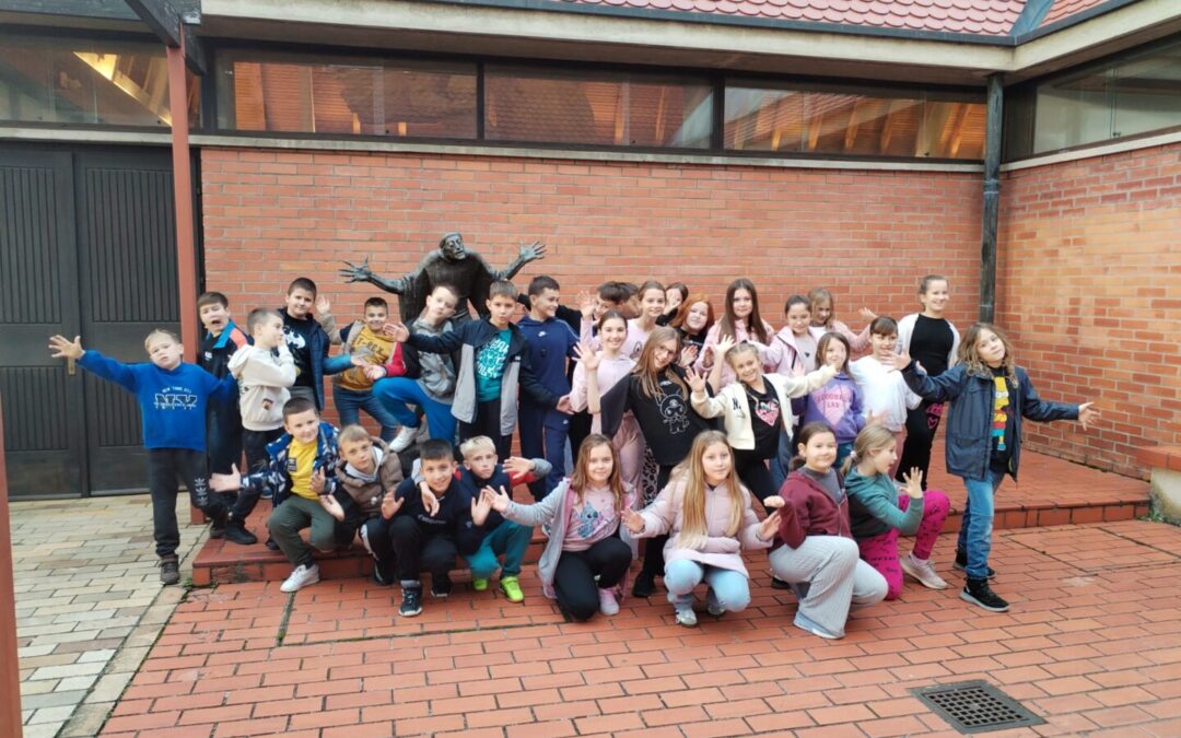 Nakon obilaska Krapine, učenici su se uputili prema Muzeju krapinskih neandertalaca. Tamo su najprije pogledali film o neandertalcima, a potom razgledali muzejski postav o razvoju života na Zemlji. Učenici su bili oduševljeni interaktivnim sadržajem postava, a nakon čega su naučeno primijenili na radionici modeliranja prapovijesnih životinja. Oblikujući prirodnom glinom odabrane prapovijesne životinje, nastala je zbirka njihovih malih umjetničkih djela koje su ponosno ponijeli sa sobom. Prije polaska prema Kumrovcu, učenici su promatrali Stari grad slušajući legendu o trojici braće – Čehu, Lehu i Mehu.