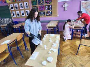 Polaznici izvannastavnih aktivnosti naše škole, Kreativne skupine i Modeliranja, su u petak, 20.3.2026. imali radionicu izrade uskršnjih ukrasa od gipsa. Učenici su izrađivali razne uskršnje motive. Prvo su samostalno miješali gips sa vodom u određenom omjeru, nakon toga ga ulijevali u kalupe, te nakon sušenja pažljivo vadili ukrase van iz kalupa. Radionicu su vodili učitelji Domagoj Patek i Ivica Švaljek.
